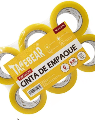 TAPEBEAR BOPP CINTA EMPAQUE AMARILLO 48mm X 150m 38mµ ACRILICO 6 PAQ /6 PZS - CAJA C/36 PZS